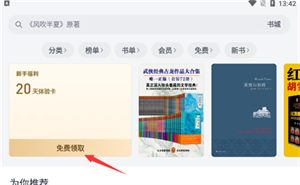 2、登录成功进入软件点击阅读也就是首页,在这里软件为我们推荐了多种不同类型的小说;