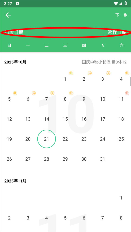 2、设置好出发日期及返程日期