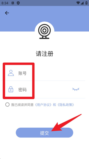 1. 打开 LaiCam App,点击“注册”按钮,填写账号与密码后提交并完成登录操作。