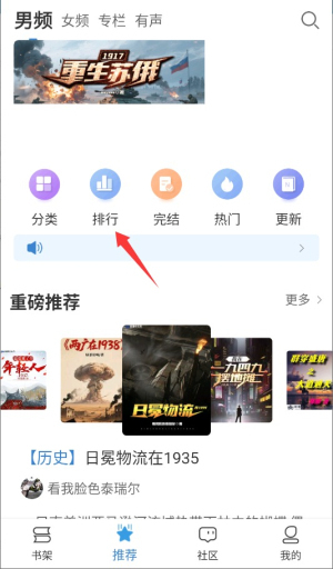 2、在首页导航栏选择"排行"入口,浏览热门推荐与各类榜单作品。