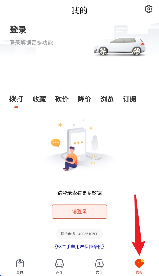5、“我的”页面可登录查看浏览记录、收藏车辆及降价信息,方便后续跟进。