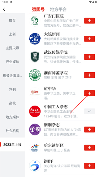 每日点击“+”号新关注2个强国号或学习平台即可积2分,重复订阅无效。
