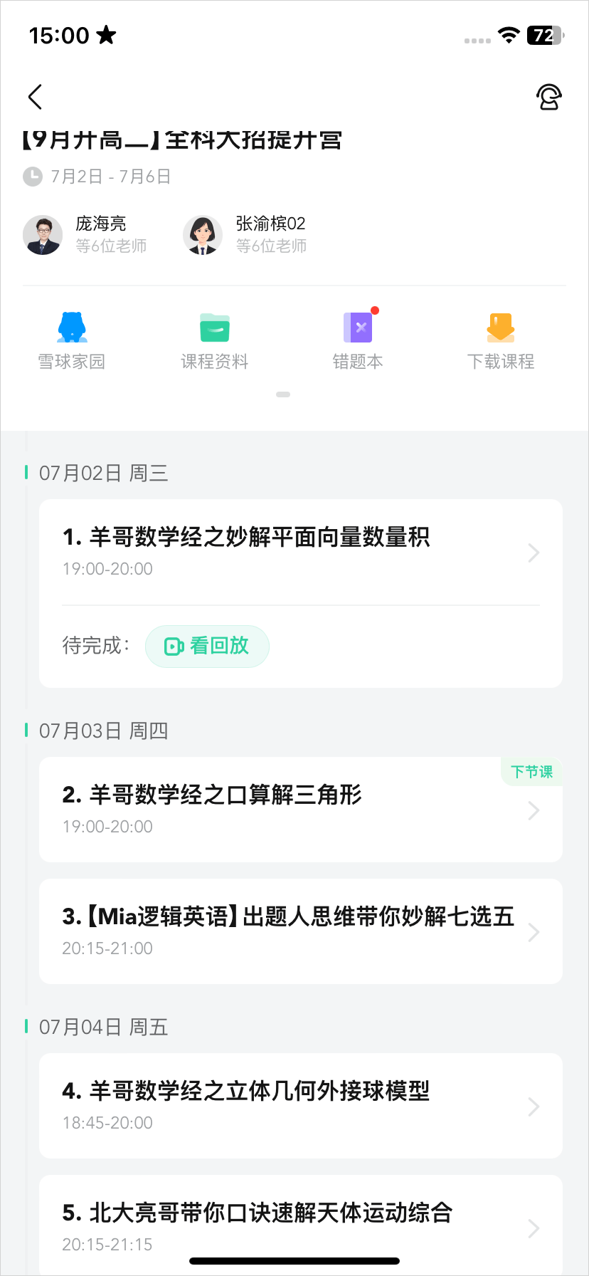 3、领取好的会在上课页面排好每天的课程时间,大家可以按照规定的时候来上课