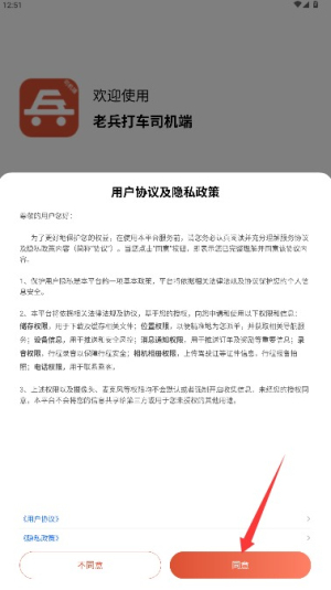1、打开应用后仔细阅读用户协议和隐私政策,确认后点击同意按钮进入应用。