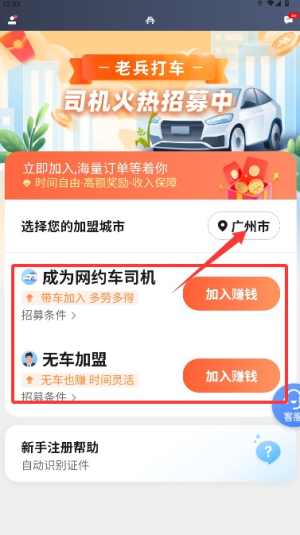 3、根据运营需求选择目标加盟城市,并选择网约车司机或无车加盟等合作模式。