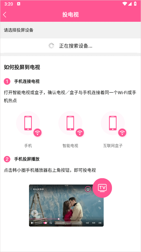 3、等待搜索设备连接即可(注意要手机和电视连接同一WiFi)