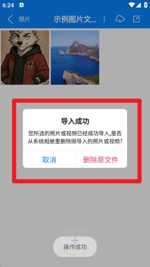 4. 出现“导入成功”提示后,选择是否删除原相册里的文件,操作更彻底。