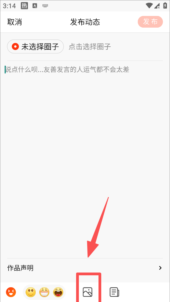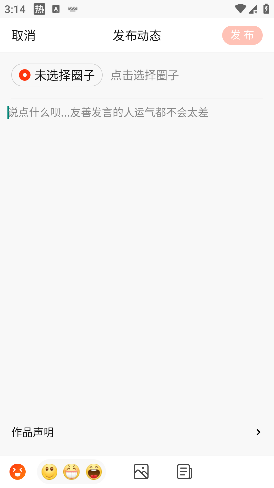 2、即可编辑文案,点击选择圈子