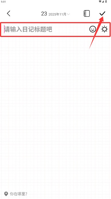 4、填写日记标题并选择心情标签,输入详细内容后点击保存按钮完成记录存储。