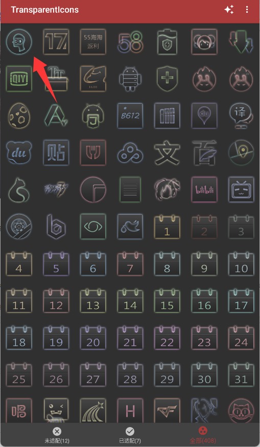 4、在适配列表中挑选喜欢的透明图标样式,点击应用后按提示授权即可完成替换。