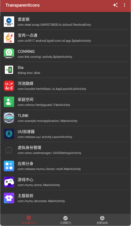 3、目前图标少,没有适配的图标,可在申请适配中申请适配哟。