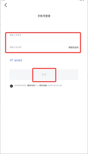 3、在登录页面勾选同意用户协议与隐私政策条款,进入身份验证步骤。
