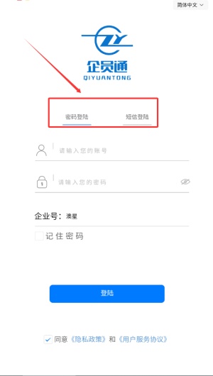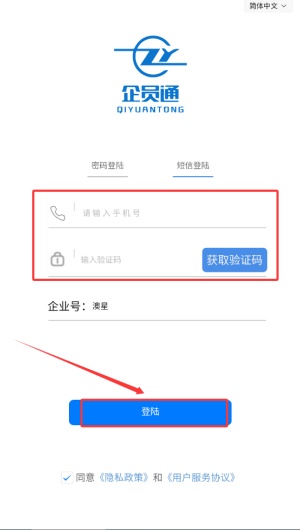 3、完成企业选择后,点击选择适合的登录方式,如验证码或密码登录。