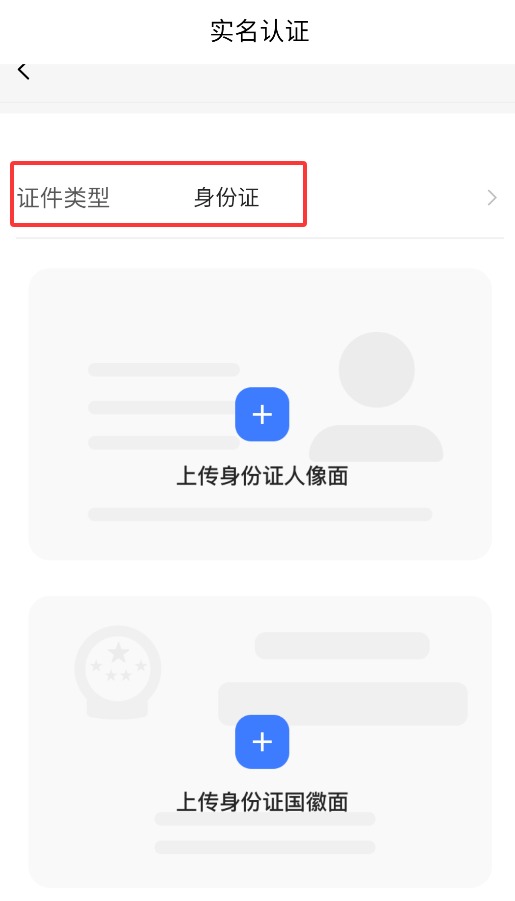 3、选择身份证或护照等证件类型,上传资料并输入手机验证码完成注册。
