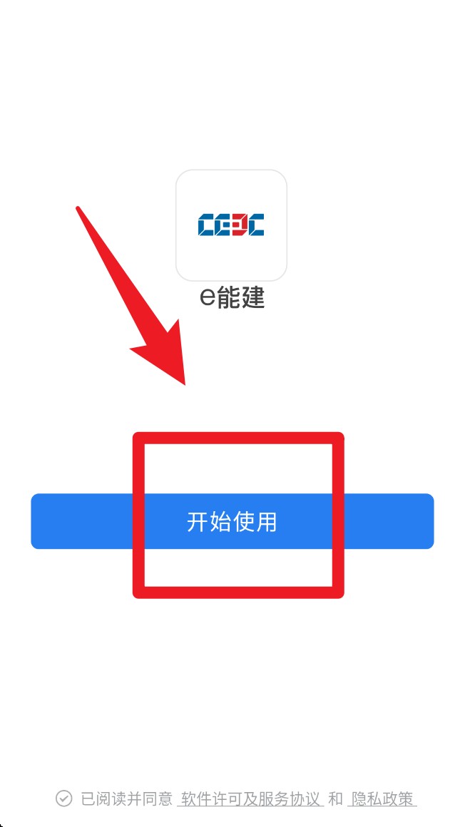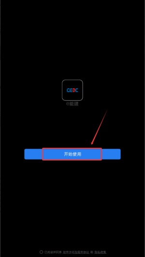 1. 打开 App 后点击「开始使用」,正式进入 e能建 移动办公平台,需先完成登录验证流程。