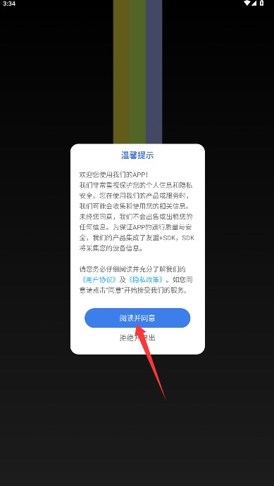 1、打开应用后仔细阅读用户协议和隐私政策,确认后点击阅读并同意按钮进入。