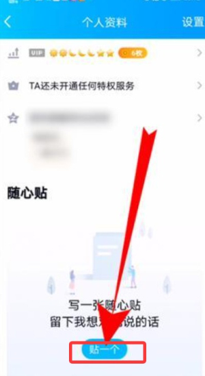 3、在好友的个人资料页面中,找到并点击“贴一个”或“随心贴”功能入口。