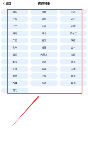 3、您可从列表中选择所在省份或直辖市,确认后进入下一步详细设置。