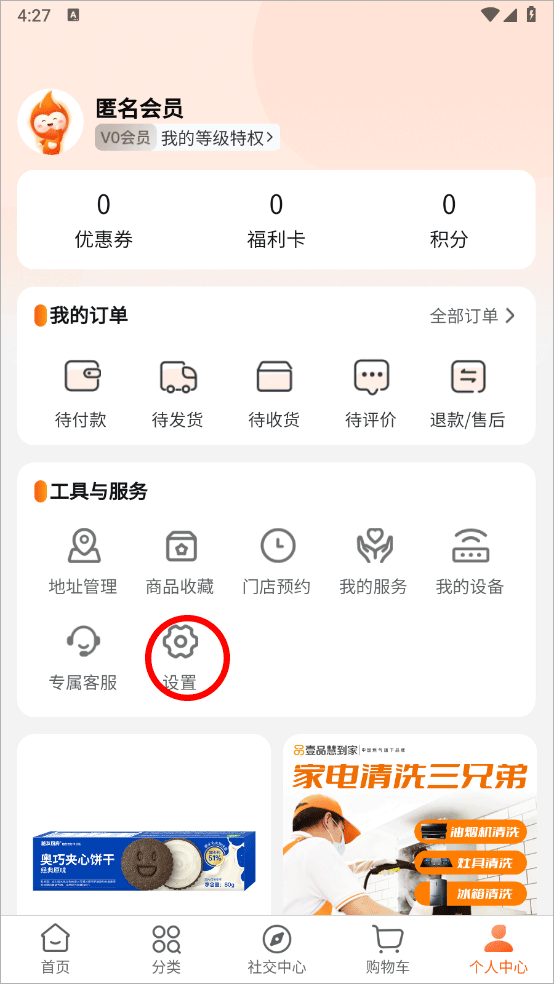 2、进入页面点击设置图标