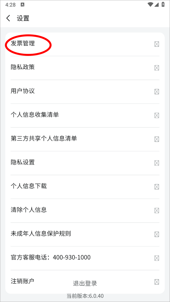 3、在设置界面点击发票管理