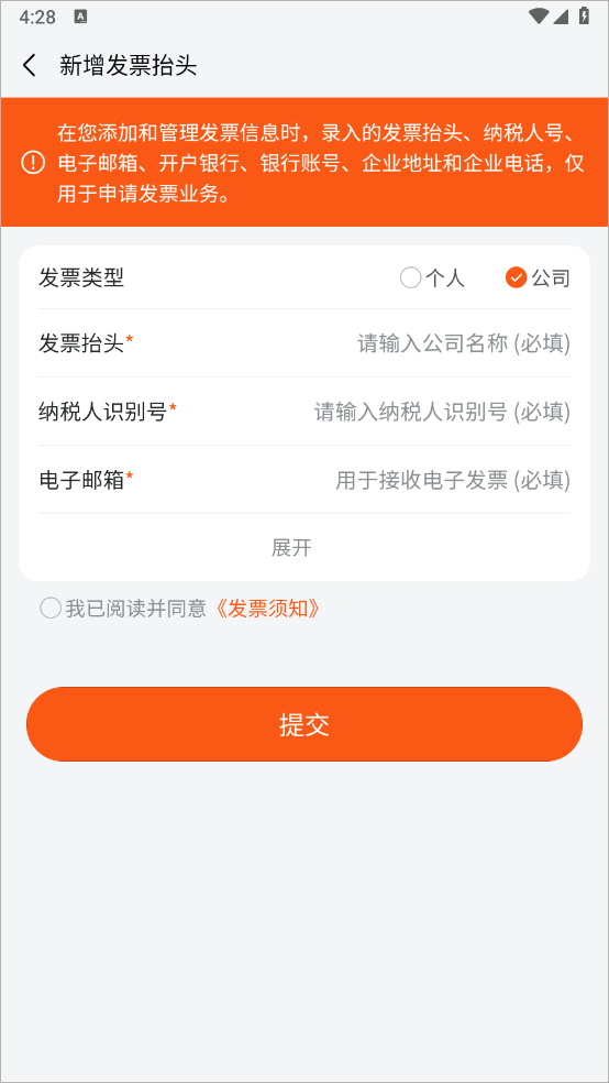 4、点击新增抬头