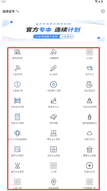 2、根据报考需求在证书分类中选择目标资格类型,如教师资格等职业认证考试。