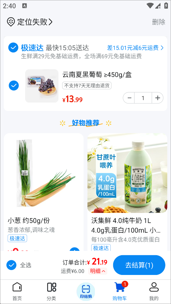 在家也能买生鲜,满29元免运费;满足1-3人小家庭所需,份量刚刚好,每天都新鲜