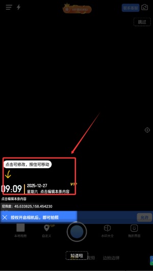 2、点击水印即可进入修改模式,长按水印可自由拖动调整其位置。
