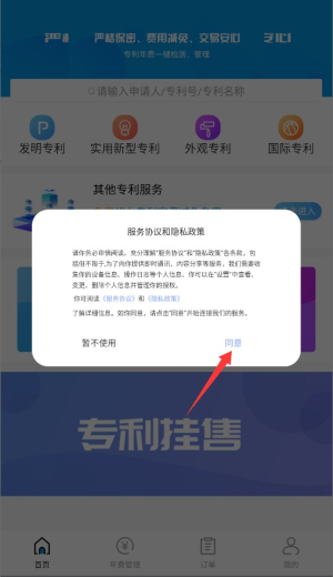 1、首次启动应用时,系统会显示用户协议和隐私政策,阅读后点击同意按钮进入主界面。
