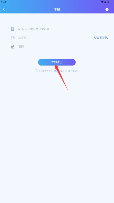 3、根据提示输入手机号码、短信验证码及登录密码,核对信息后点击立即注册完成验证。