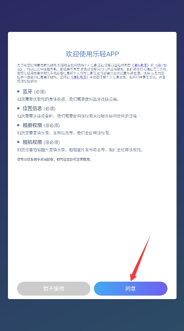 1、打开应用后仔细阅读服务协议和隐私政策,确认后点击同意按钮进入应用。