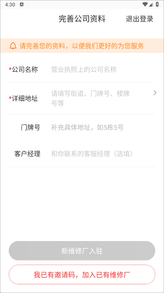 3、如果是新维修厂只需完善公司资料即可