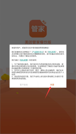 1、首次启动应用时,系统会显示用户协议和隐私政策,阅读后点击同意按钮进入主界面。