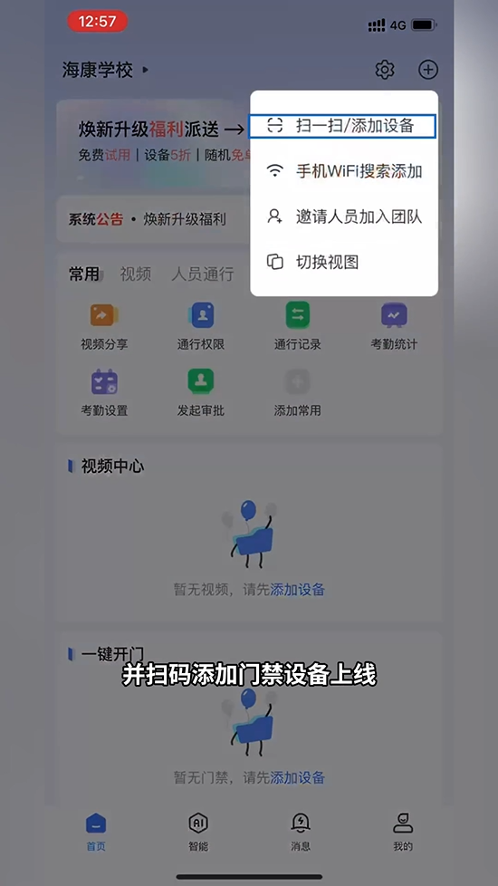 包含视频预览、视频分享、一键开门、访客管理、考勤统计、审批、人员管理、团队管理等数十种场景应用