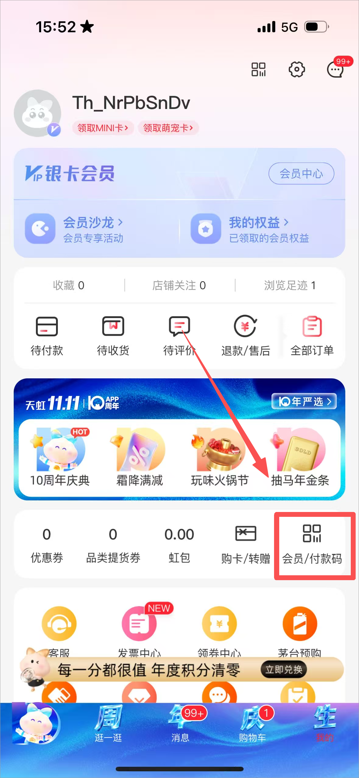 1、打开天虹商场app最新版后点击右下角的“我的”