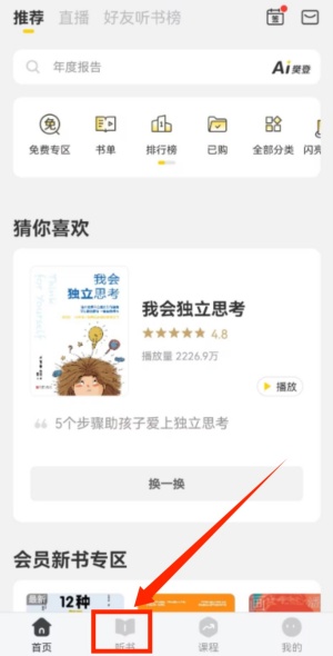1、当您进入软件首页后,请在底部任务栏中点击“听书”功能图标。