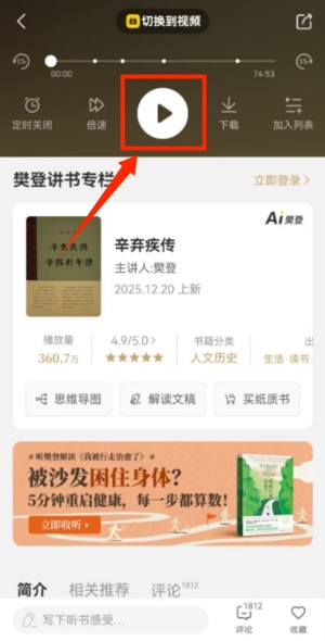3、点击播放按键后,即可开始收听该书的音频内容。