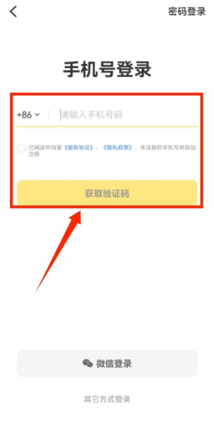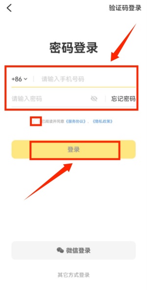 4、若选择密码登录,则输入手机号及对应密码即可完成登录。