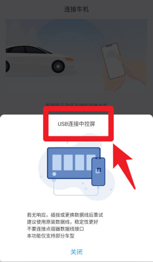 3、在USB连接中控屏界面,提示插拔或更换数据线后重试,推荐使用原装数据线以提高稳定性,只支持部分车型。