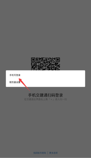 3、在功能页面选择"手机号登录"选项,进入账号验证界面。