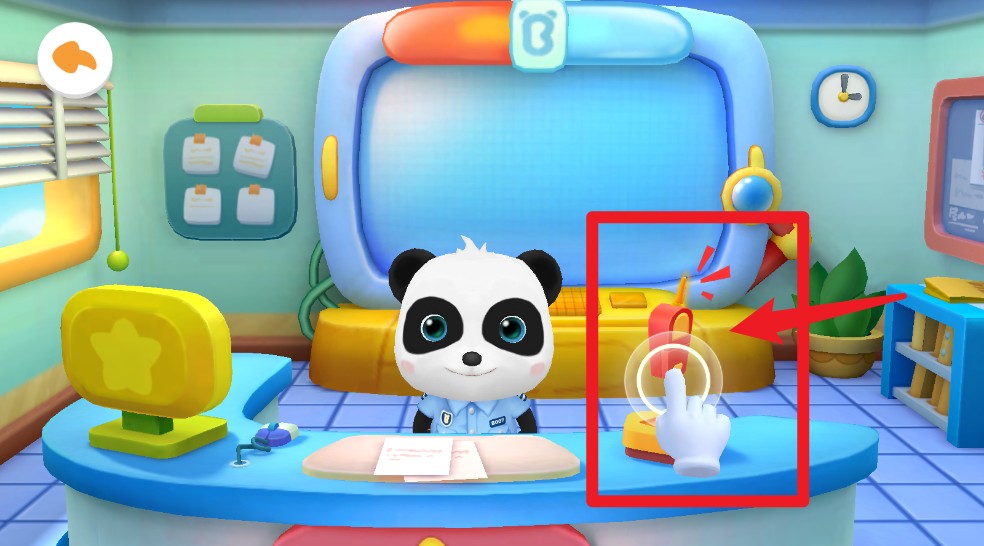 2、在警局接警室内,点击红色按钮即可开始接收案件,宝宝化身警察正式进入角色扮演。