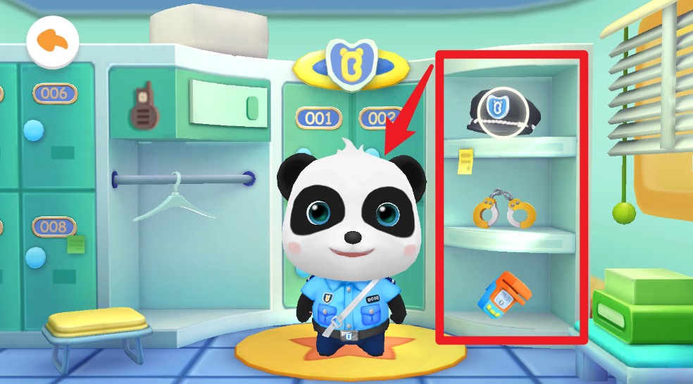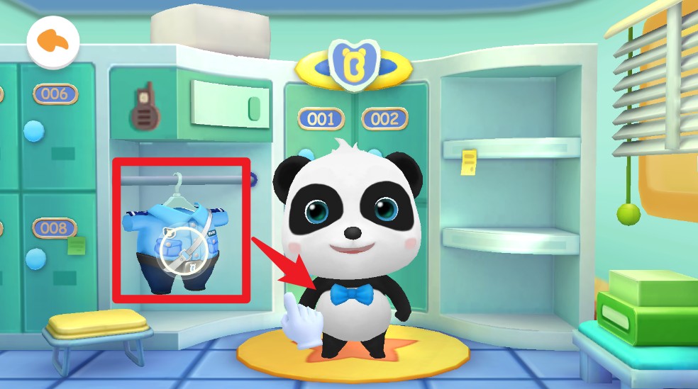 3、接警后来到更衣室,点击衣柜中的制服,帮助小警察快速换上专业的工作服装。