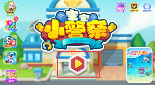 1、点击首页中间的播放按钮,即可开启宝宝小警察的任务挑战之旅,画面色彩鲜明,充满童趣。