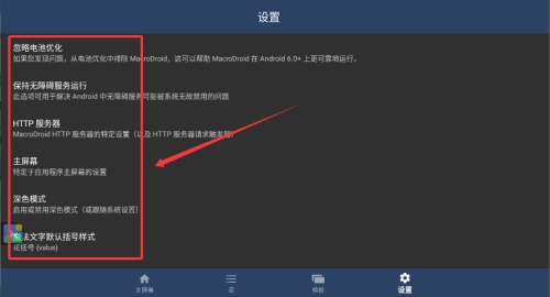 2、创建自己的宏,MacroDroid还具有强大的设置功能,包括启用根功能、通知栏选项;