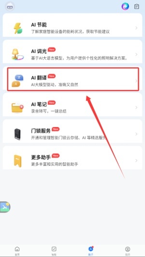 2、在助手页面中找到并点击“翻译”工具按钮以启动该具体功能。