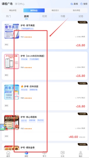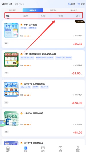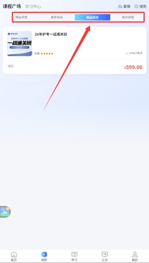 1、当您成功进入软件首页后,请首先点击“课程”栏目进入课程列表页面。