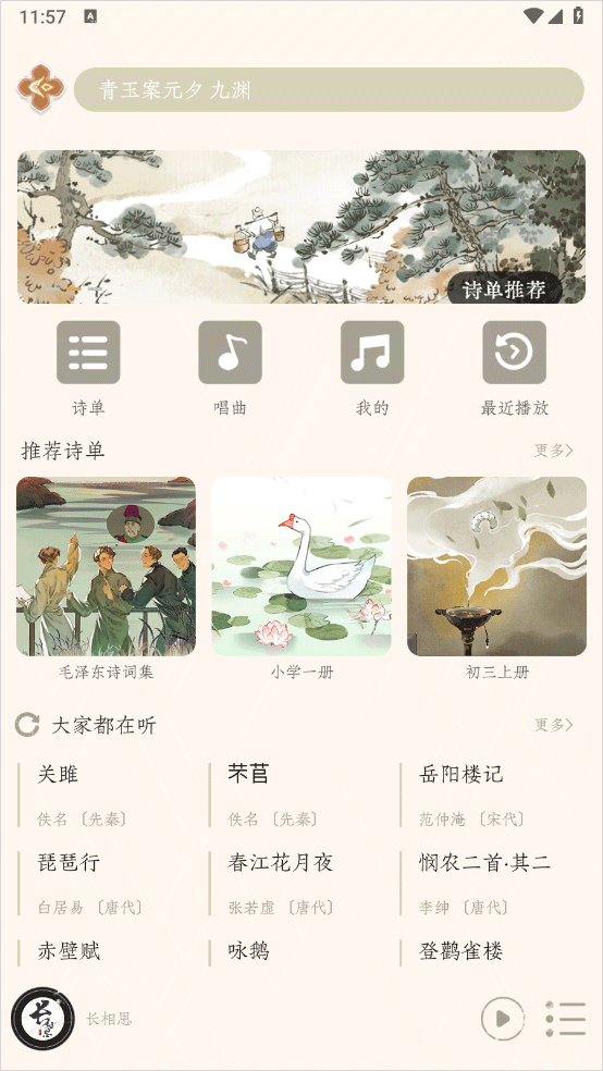 • 「心情诗词」:根据你的当日情绪与偏好,智能推荐与你心境相契合的诗词,陪你感受此刻的温度。