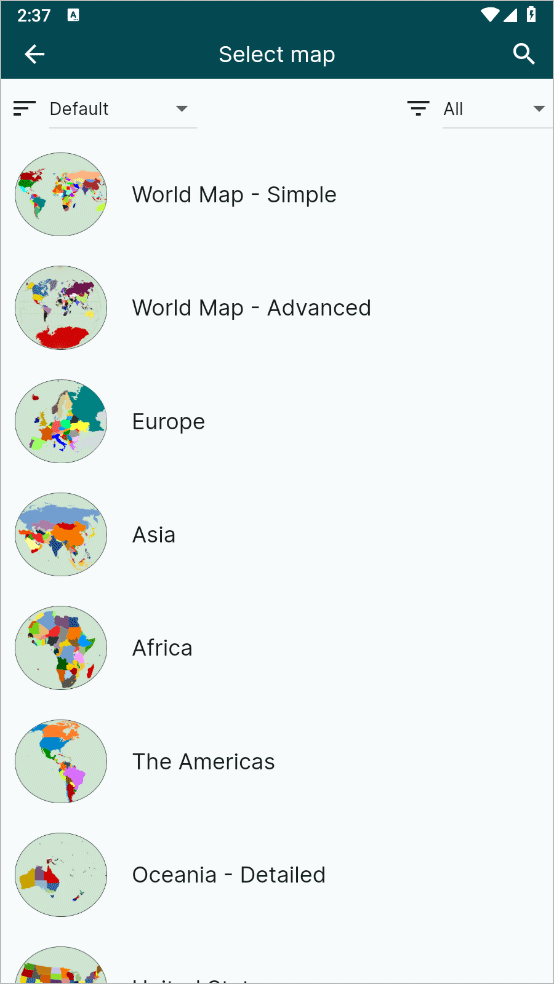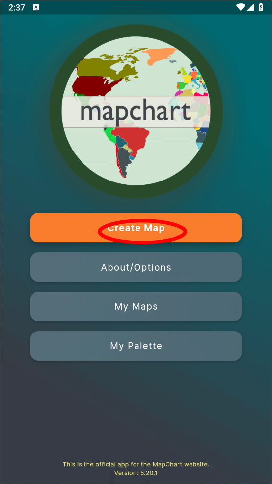 1、打开MapChart地图编辑器手机版,点击creat map选择像编辑的地区或者城市地图。