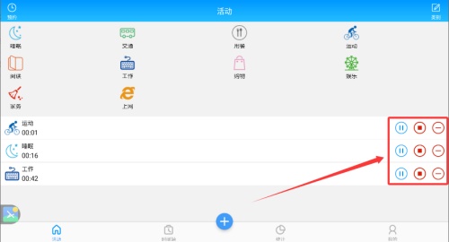 4、在计时界面中,您可以点击控制按钮暂停或继续,系统将自动计算累计时间。