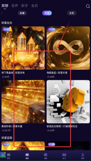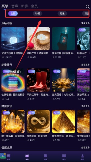 3、在冥想页面中请仔细点击选择您想体验的冥想类型与具体主题。